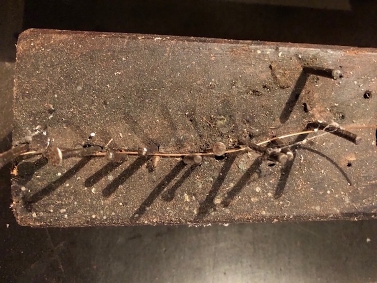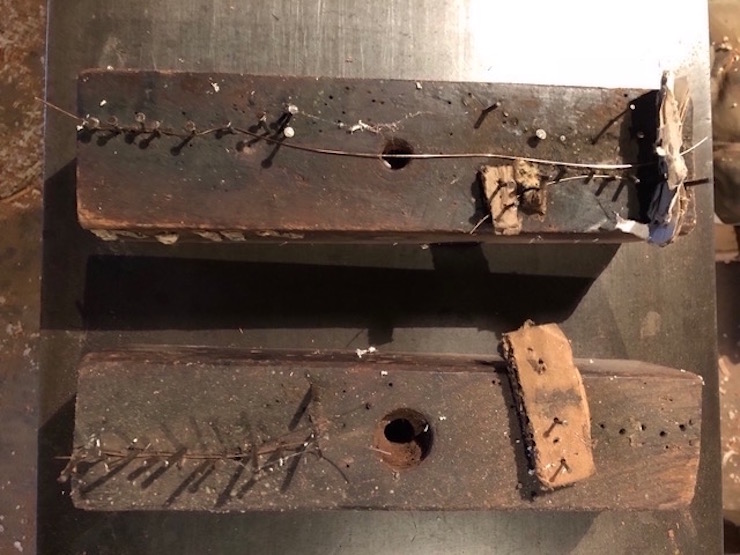 A traditional way to straighten wire. The wire straightening blocks above and below are from Ron Macdonald’s collection of tools. These photos were given to me by Serge Pirard who studied with Ron and now makes moulds using many of Ron’s tools.