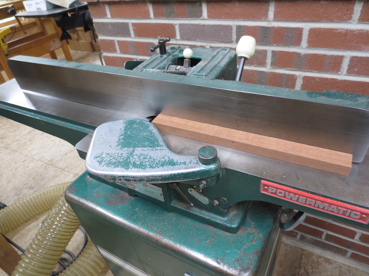 This wood has been boiled and allowed to dry. Two sides of the wood are now jointed (made straight) using a power jointer. This removes any warp or twist.