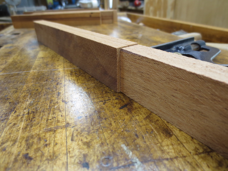About 1/8″ oversize is generally OK (so 5/8″ for the 1/2″ frame stock you mention). I generally re-saw strips of wood from very thick planks of 3″ or even 4″ thick. (For some reason I can more often find good, straight grained mahogany in the larger thicknesses.) It’s a bit of a puzzle to saw out the various parts with the least waste so the rough dimensions at this point can vary quite a bit. Larger moulds made of longer pieces may require more thickness since there’s more potential for warp over a greater length. Smaller moulds require less for the same reason.