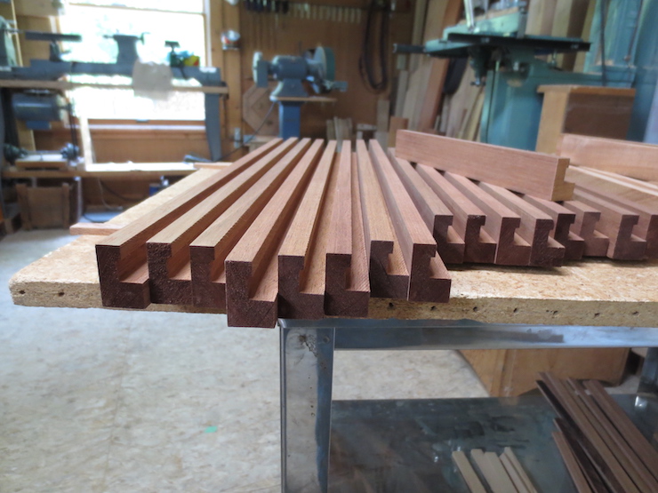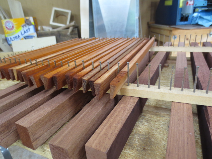 The prepared blanks are sawn into tapered rib shaped pieces. I cut these pretty close to final dimension since the wood is so stable.