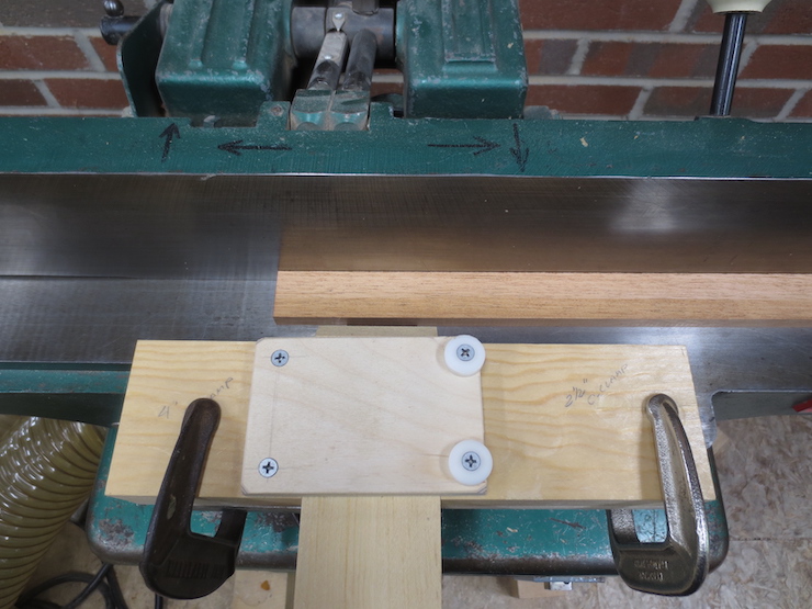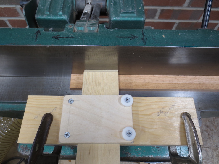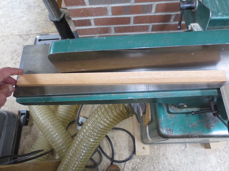 To begin one side of each frame piece is jointed perfectly flat on the freshly sharpened jointer. I am experimenting with better guards for machines to make them safer to use.