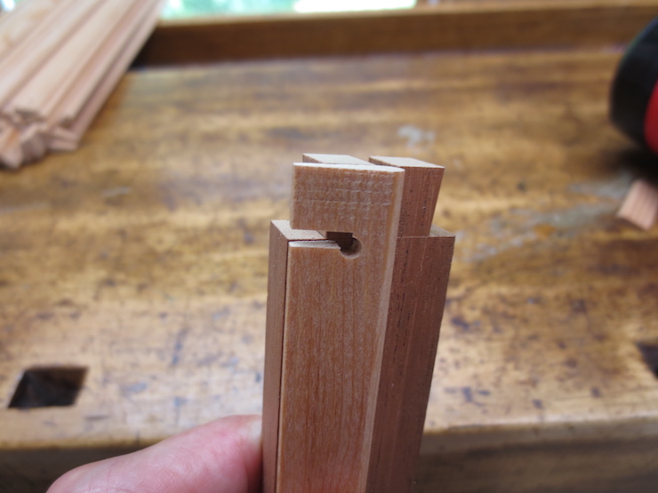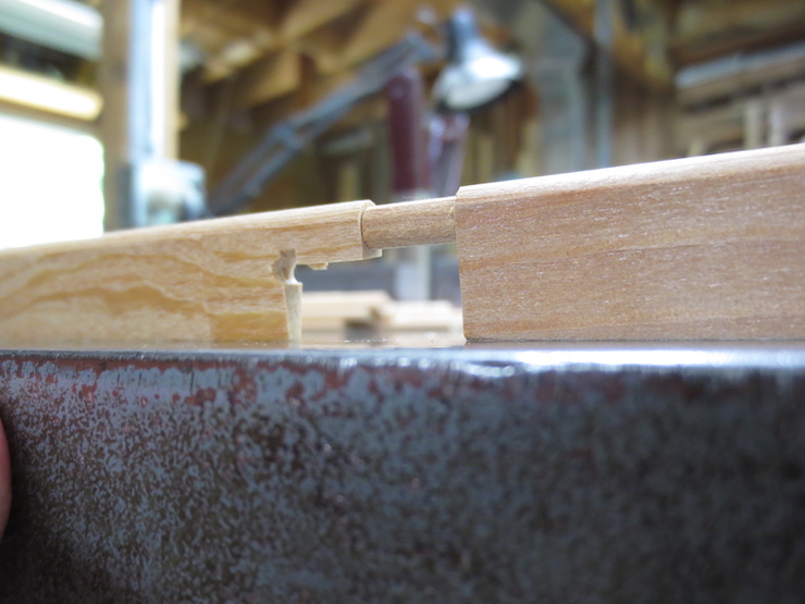 The shoulder is cut back a little so it won’t quite touch the inner side of the frame. You can see that there will be a small space between the body of the rib and the inside of the mould frame. The end of the peg will be exactly flush with the outside.