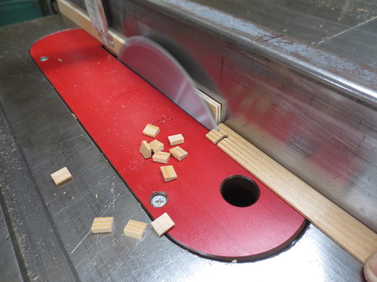 The end of a mould frame is used as a gauge to set the saw fence so the ribs are cut to the exact same length. I drill the rib holes completely through the sides of the mould so the ribs are the same length as the width of the mould. Many moulds are made with ‘blind holes’ drilled only part way into the frame.