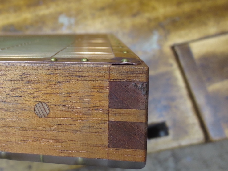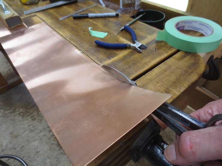 After all the nails are hammered in the soft copper is burnished to lie tightly against the wood.