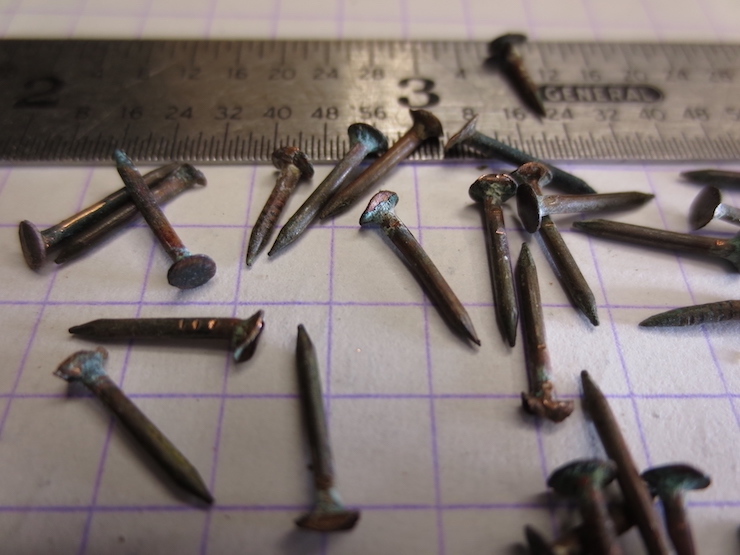 Some of the tiny copper nails extracted from British moulds during repairs.