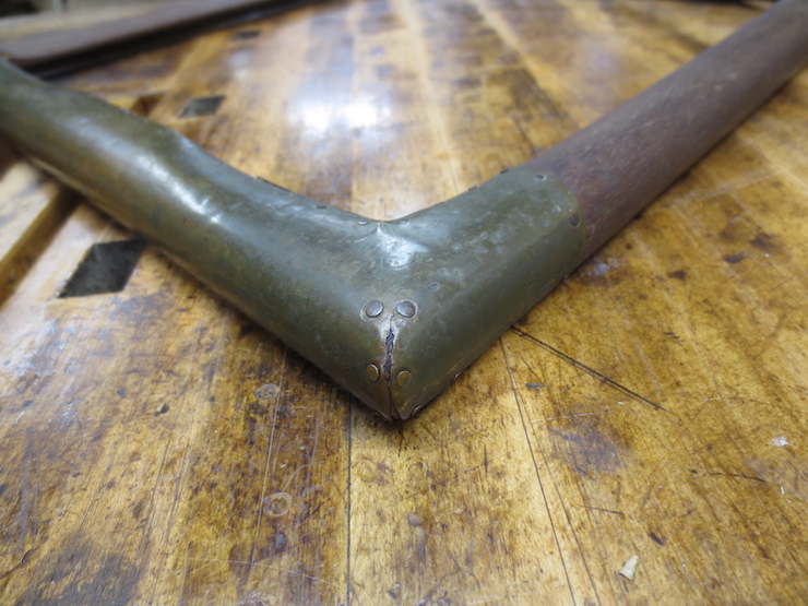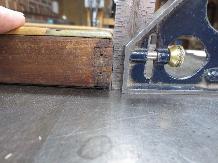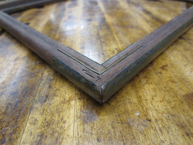 These deckle joints were made in the fashion that I prefer with joints fitting together in a rotating ‘pinwheel’ pattern. This eliminates the necessity of cutting opposite forms of the complicated joint. Notice the single inset wear plate of brass at lower right.