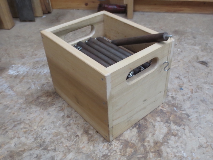 When not in use the weights are returned to this wooden crate. The box with a complete set of weights weighs 48 lbs.