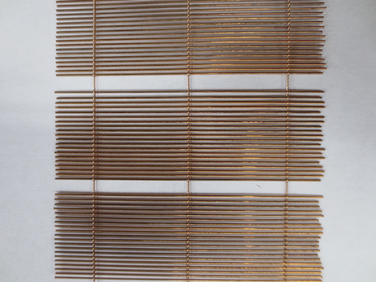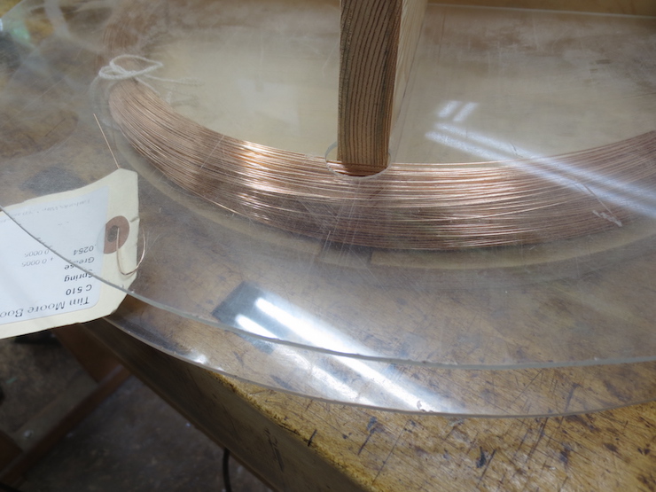 The wire used here is phosphor bronze. It is corrosion and fatigue resistant, stronger and much better for mould making than copper or brass. The wire used for chain wire twists is soft (annealed) and the wire that is straightened for laid wires has some temper. For years I used only spring tempered for the laid wires but I have been told that 1/2 hard is what was used at Amies. I have since tried 1/2 hard and 3/4 hard to make laid wires. All worked well though, in general, harder tempers may be a little more difficult to straighten.