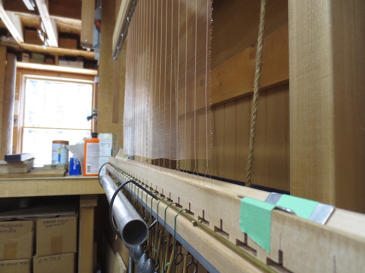 The wire worked beautifully. It was to be another 12″ x 18″ fine laid facing. It is a first attempt of 27 laid wires per inch using some new sizes of wire. Laid wires are .0158″ diameter and chain wire is .0106″.