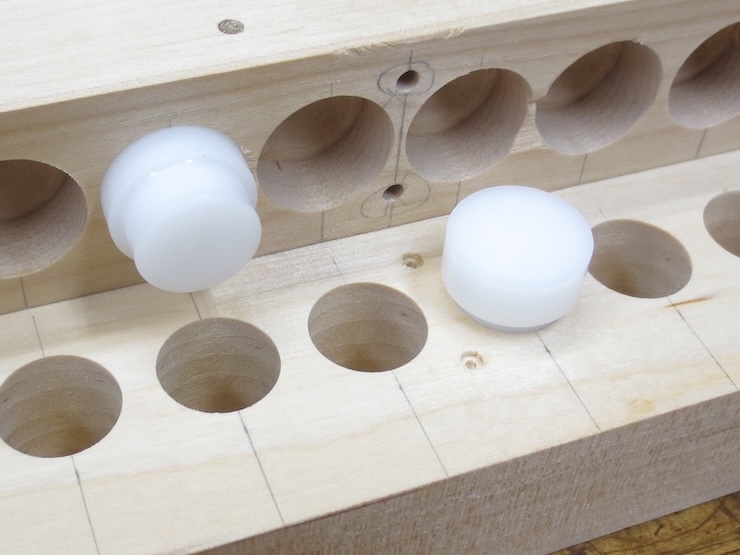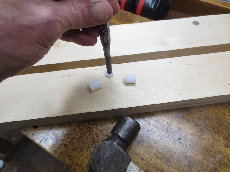 An acetal plug is tapped into place.