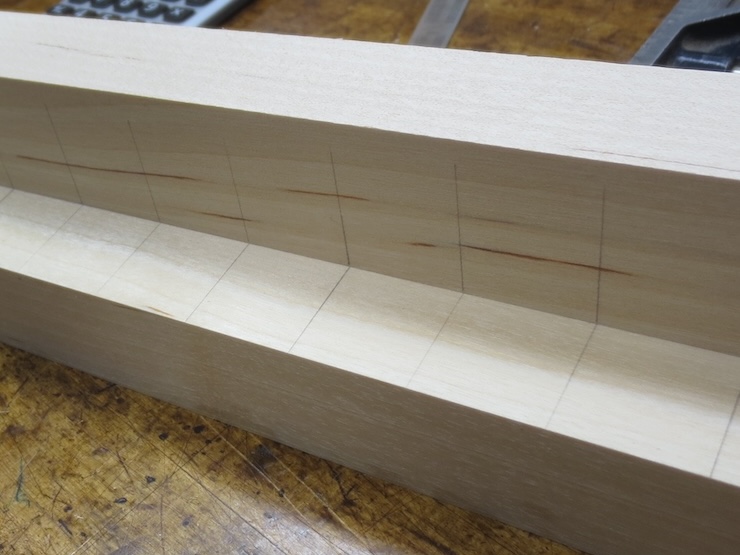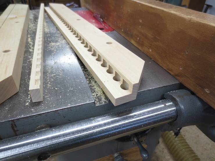 You can see how these slots are the beginnings of very fine cuts that will cut farther up into the trough. The top part is a completed wire trough.