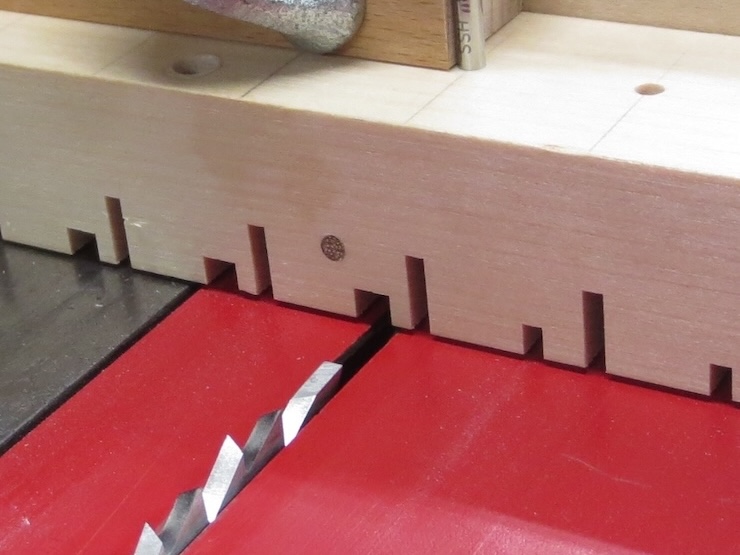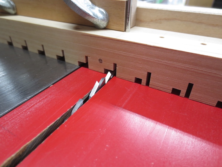 The cutting action has been stopped by the wooden strip riding on the blocks. The cuts are about .025″ wide. The heaviest wire that will pass through these slots is .015″