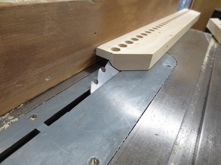 First the waste is roughed out with the table saw set at 45 degrees.