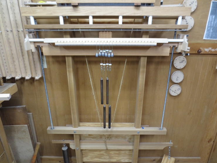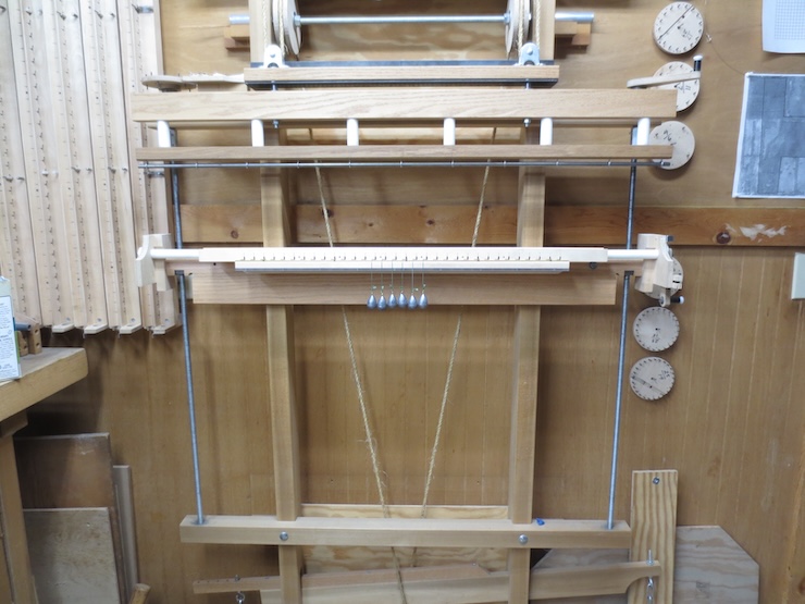 The finished 13/16″ twisting mechanism is installed along with a few spindles and weights for testing.
