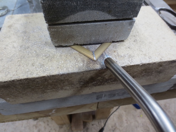 When the solder has flowed into the joint a quick brushing with a cheap bristle brush gets rid of most of the excess solder. For my first experiments I was cleaning the entire part with alcohol, using liquid flux and also using a much bigger flame. The solder ran all over and needed a lot of filing. Many of the joints weren’t well soldered and had to be re-worked. The newer method results in a good joint with minimal cleanup needed.
