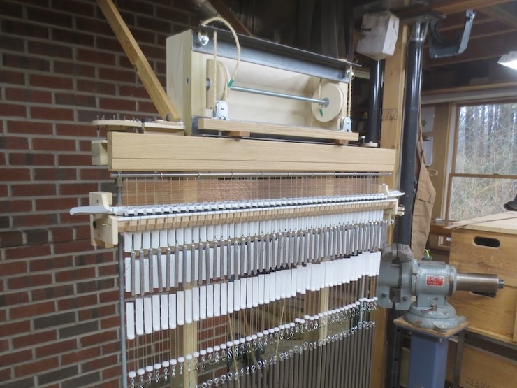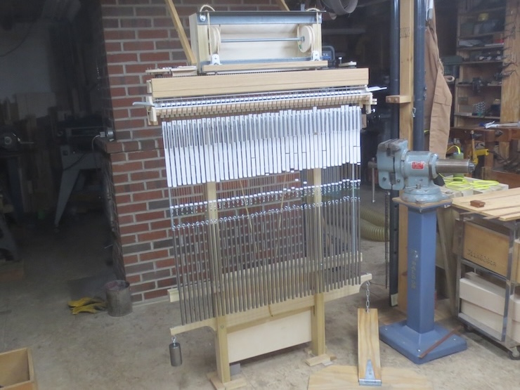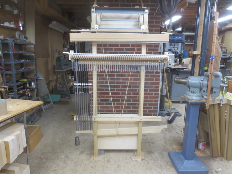 The loom is ready to go. I found that the 45 lbs. could in fact be raised by the foot treadle. (I had my doubts). I did have to adjust the lift rope a little tighter and of course the lifting felt different.