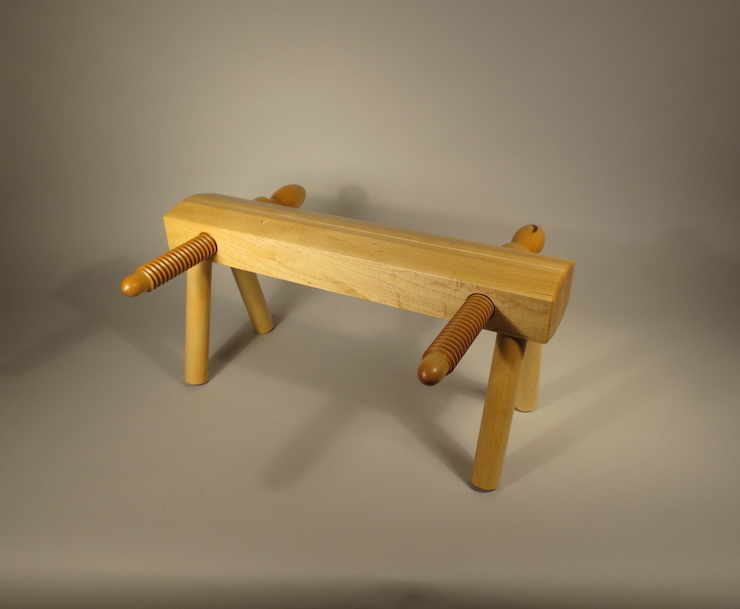 A small (12″) Repair Press. The jaws are 1-7/8″ thick and 2-5/8″ tall. The legs bring the total height up to about 9″. Made of Hard Maple. Screws have a pitch of 4 threads per inch. Price $359.00. None available at this time.